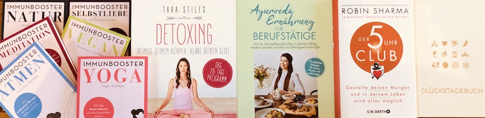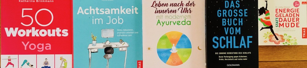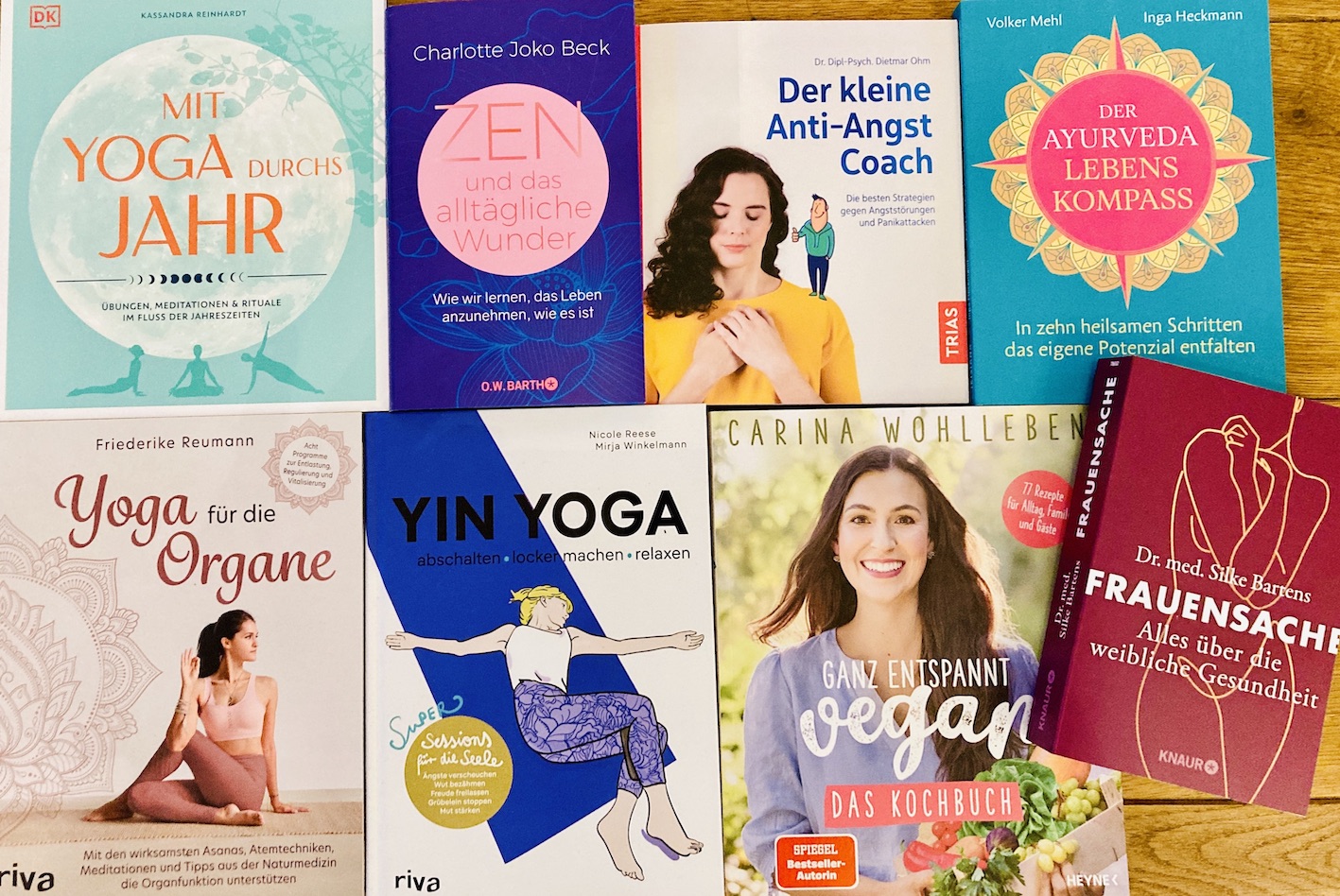 +++ "Mit Yoga durch Jahr" von Kassandra Reinhardt +++ "Der kleine Anti-Angst-Coach" von Dr. Dipl-Psych. Dietmar Ohm +++ "Der Ayurveda Lebenskompass" von Volker Mehl und Inga Heckmann +++ "Yoga für die Organe" von Friedericke Reumann +++ "Yin Yoga - abschalten, locker machen, relaxen" von Nicole Reese und Mirja Winkelmann +++ "Ganz entspannt vegan" von Carina Wohlleben +++ "Frauensache - Alles über die weibliche Gesundheit" von Dr. med. Silke Barrens +++